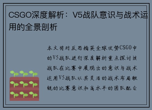 近年来,电子竞技逐渐成为全球范围内备受关注的体育项目之一,其中《反恐精英:全球攻势》(CS:GO)作为一款经典射击游戏,其职业战队的表现更是引发了广大玩家与观众的热议。最近,V5战队在CS:GO状态排名中创下新高,这一成绩不仅让他们赢得了更多的关注,也在电竞圈内引发了广泛讨论。本文将从四个方面详细分析V5战队这一成就背后的原因,包括团队合作、选手个人表现、教练策略以及行业影响力等多个维度,以期全面...